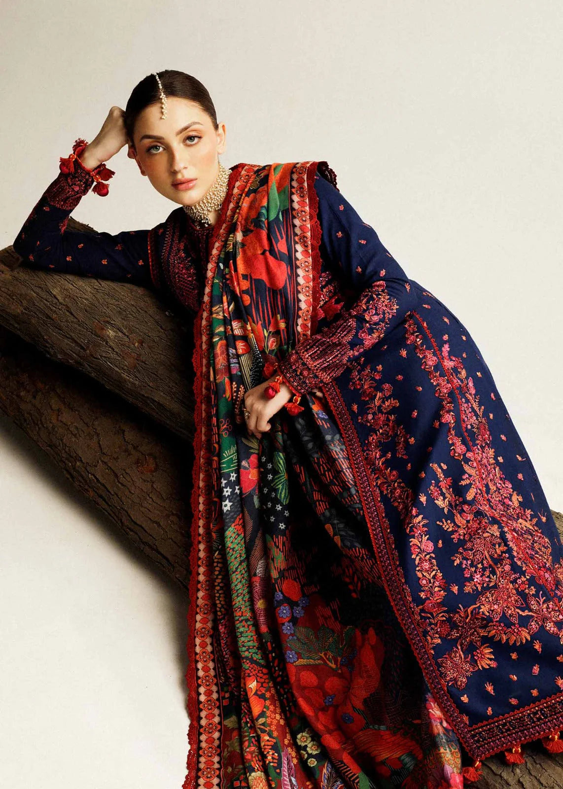 HR 570-3 Piece - Unstitched Heavy Embroidered Dhanak Fabric